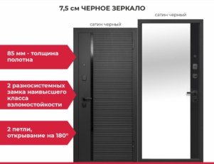 Дверь мет. 7,5 см Черное зеркало Сатин черный 860 правая