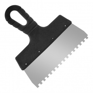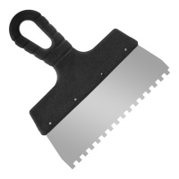 нержавеющая сталь, пластиковая рукоятка, квадратный зуб. Толщина стали – 0,4 мм. Применение: для нанесения клеевых составов, цементных монтажных смесей при укладывании кафельной плитки, приклеивании стеновых панелей.Базовая единицашт