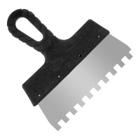 Шпатель с черной ручкой нерж.сталь 200мм зуб 10*10 мм (20шт/уп) РемоКолор